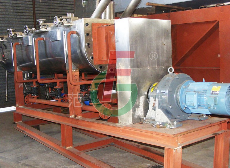 該機適用于處理各種膏糊狀,粒狀粉狀等熱穩(wěn)定性好的物料,在特殊條件下也可干燥熱敏性物料及在干燥過程中回收溶劑。加熱介質(zhì)可采用蒸汽,熱水,熱油等。典型干燥物料有:碳黑,碳酸鈣,石膏,粘土,尼龍和聚脂片,聚乙烯,聚丙烯等。