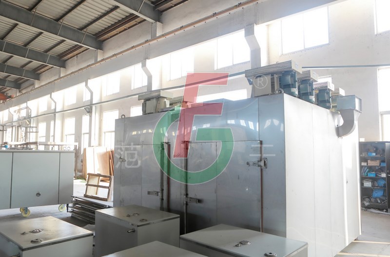 2、利用強制通風(fēng)作用,箱內(nèi)設(shè)有可調(diào)式分風(fēng)板,物料干燥均勻。熱源可采用蒸汽、熱水、電、遠紅外,選擇廣泛。
