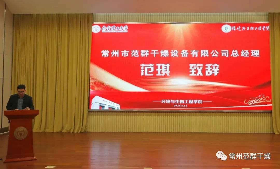 4月12日下午, 南京理工大學環生學院環境與生物工程學院舉行2022年度社會獎學金頒獎典禮暨優秀學生報告會。南京理工大學博士研究生、常州市范群干燥設備有限公司總經理、江蘇南理范群裝備科技有限公司總經理范琪博士應邀出席并作為企業代表發言。