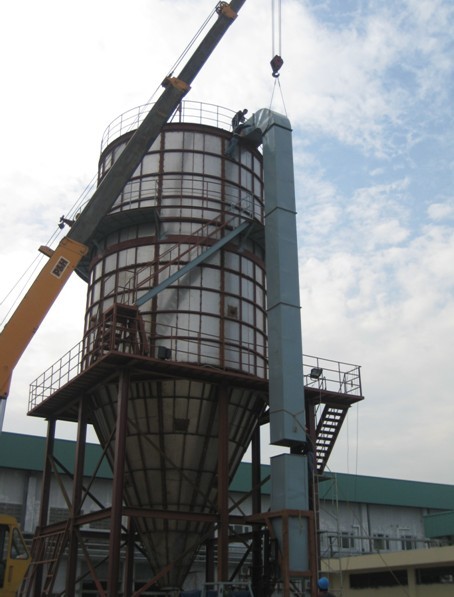 該套設(shè)備是專門為發(fā)酵液噴霧干燥而設(shè)計(jì),要求產(chǎn)品具有生物活性。全套設(shè)備包括熱風(fēng)系統(tǒng)、噴霧干燥塔、袋式除塵器等,是我司到目前為止在國外現(xiàn)場施工的最大噴霧干燥機(jī)。